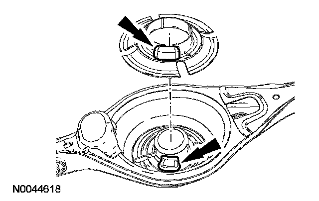 2. If removed, position the spring lower seat into the lower arm aligning the recess in the seat with the projection on the lower arm.
