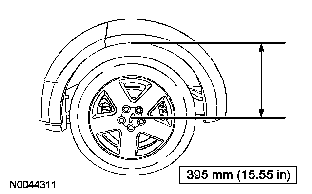 Using a suitable jack, raise the suspension until the distance between the center of the hub and the lip of the fender is equal to 395 mm (15.55 inch).
