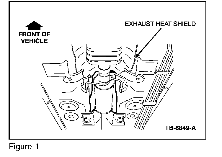 2. Inspect the heat shield wings positioned in the rear portion of the exhaust shield, above the muffler. (Figure 1)