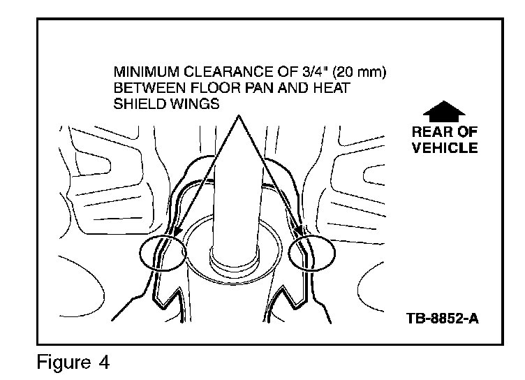 3. Verify that the two (2) wings are not touching the floor pan tunnel (Figure 2). If they are, proceed to Step 4. If not, follow the normal service diagnostic procedures, refer to WSM, Section 100-04.
