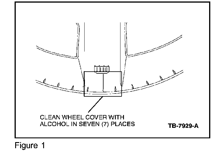 2. Clean each wheel cover in seven (7) places with alcohol (Figure 1).