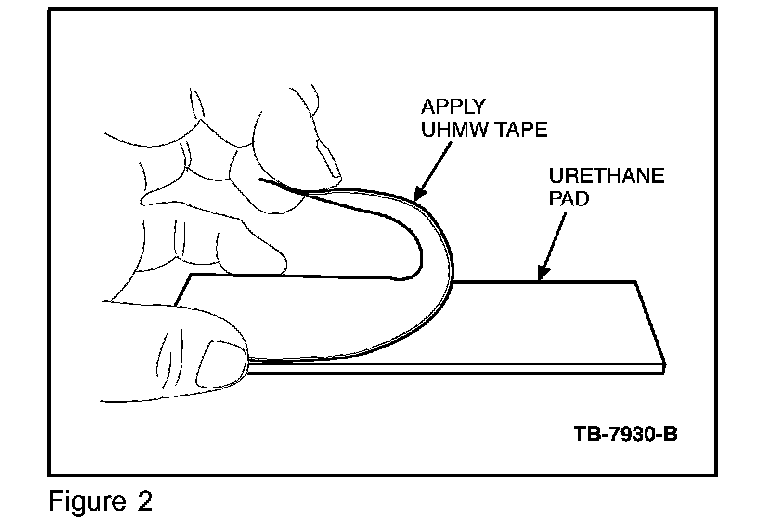 4. Remove backing paper from one (1) side of the UHMW tape and apply the tape to the high density urethane foam pad (Figure 2).