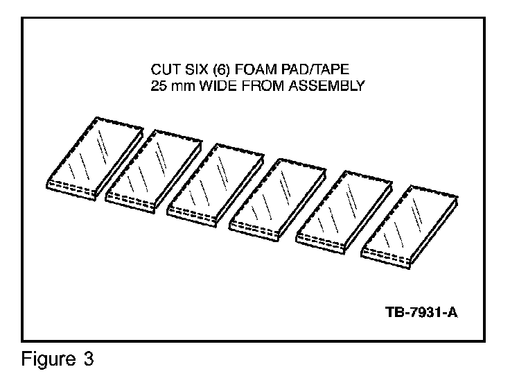 5. Cut each of the five (5) pieces of foam pad/tape assembled in Step 4 into six (6) 1" (25 mm) wide pieces (Figure 3).