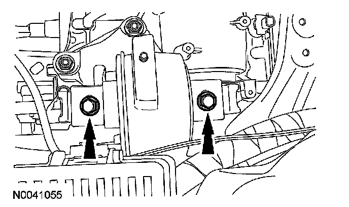 33. Raise the transaxle and install the 2 transaxle insulator bolts.