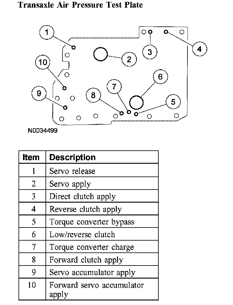 Follow the procedure to determine the location of the inoperative clutch or band by introducing air pressure into the various test plate passages.