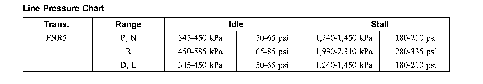 Line Pressure Chart: