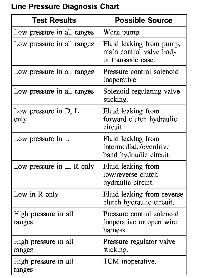 Line Pressure Diagnosis Chart: