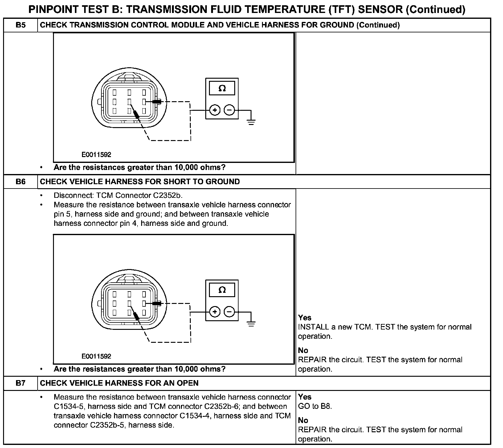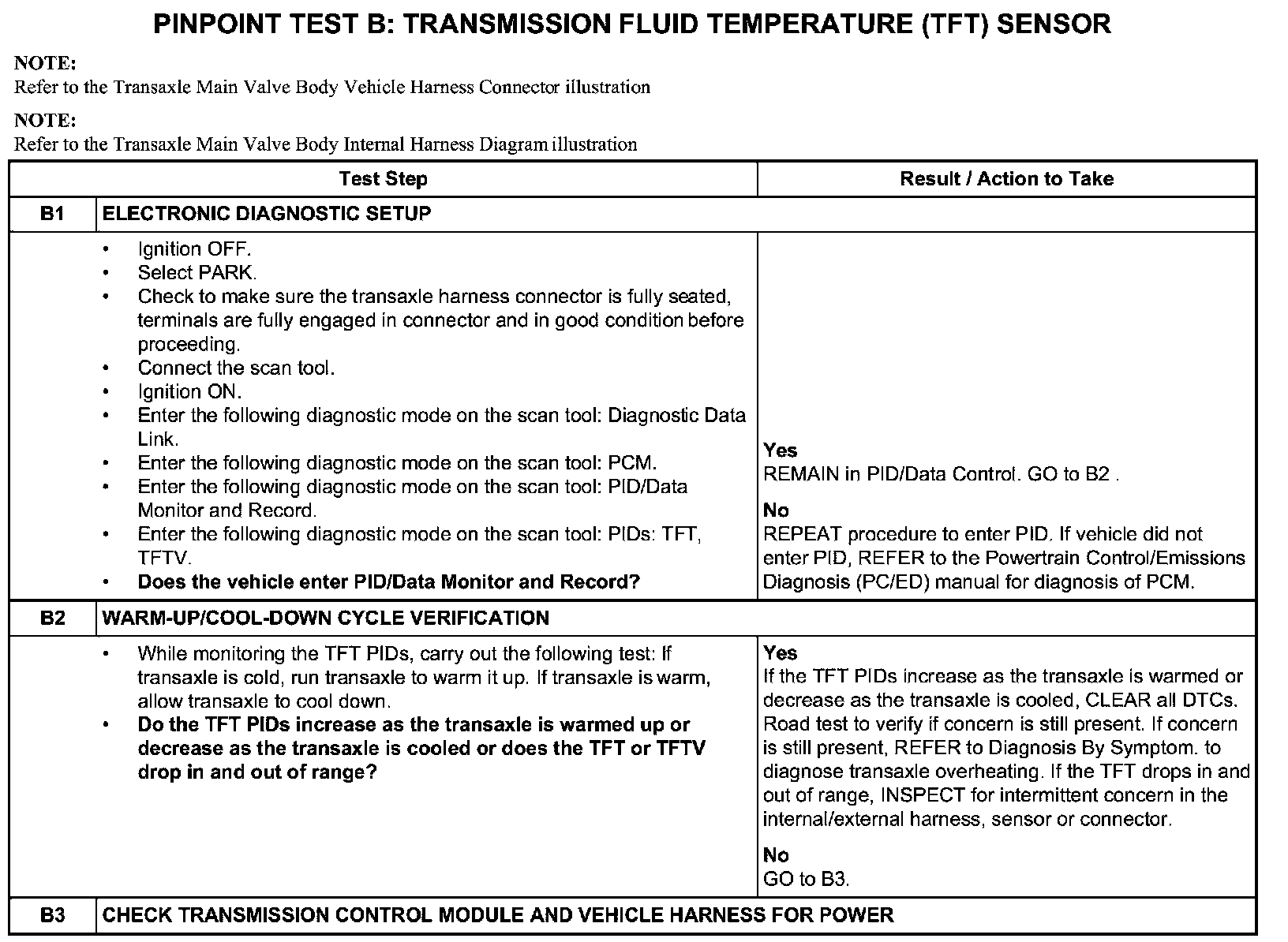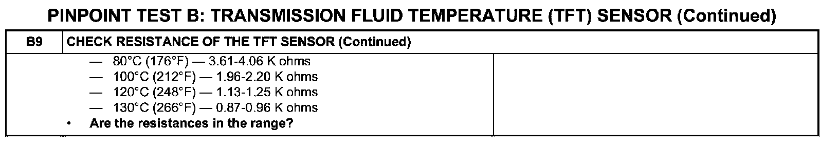 PINPOINT TEST B: TRANSMISSION FLUID TEMPERATURE (TFT) SENSOR
