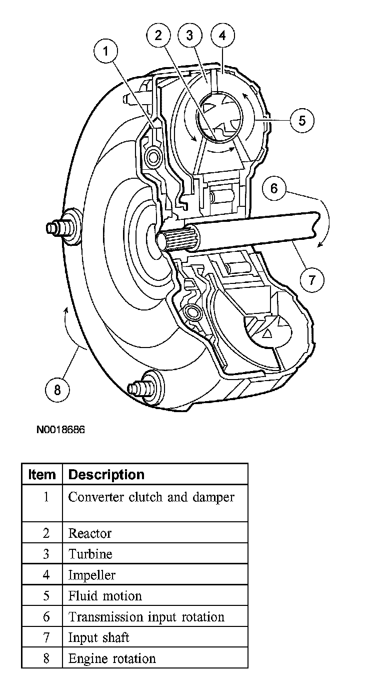 Torque ConverterThe torque converter transmits and multiplies torque by means of automatic transmission fluid inside the torque converter. The torque converter is composed of the: