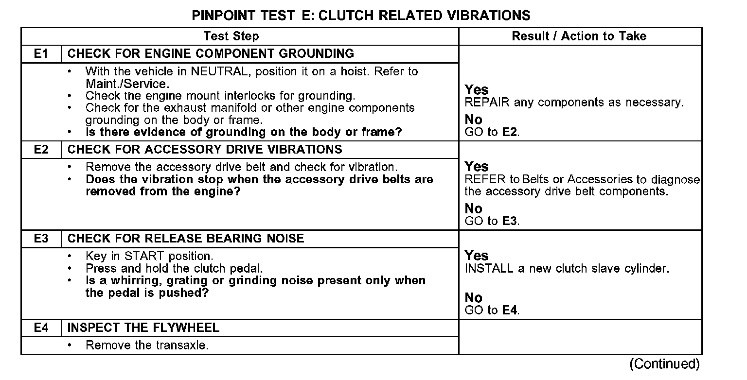 Pinpoint Test E: Clutch Related Vibrations