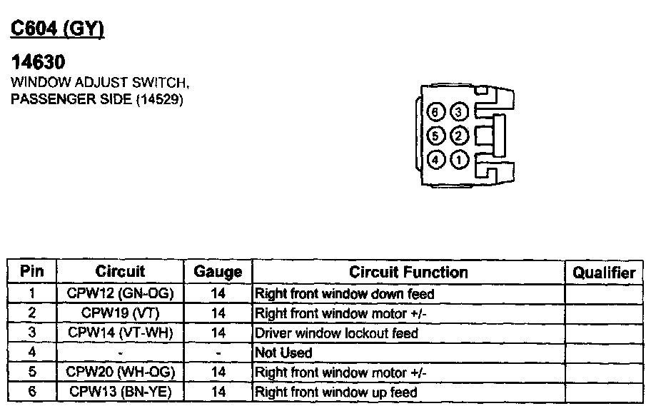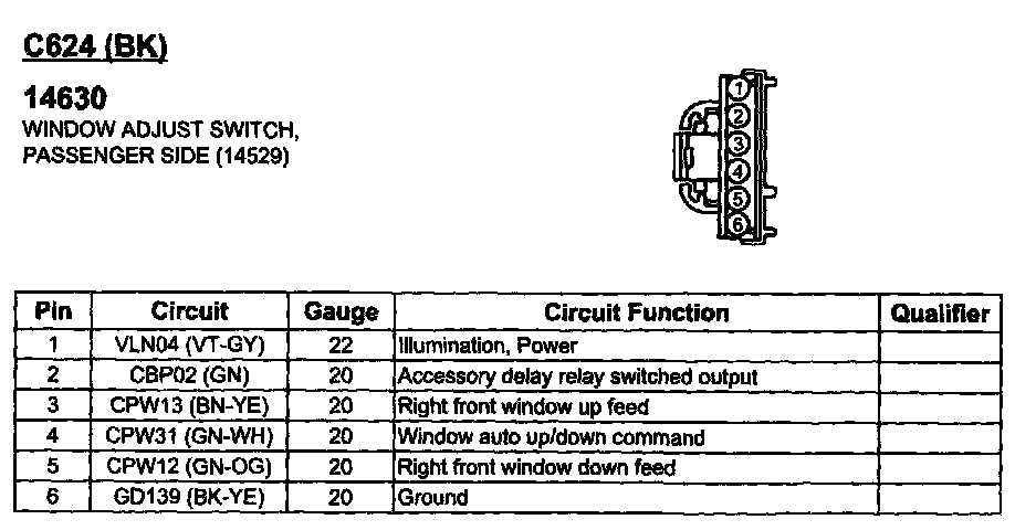 Window Adjust Switch, Passenger Side