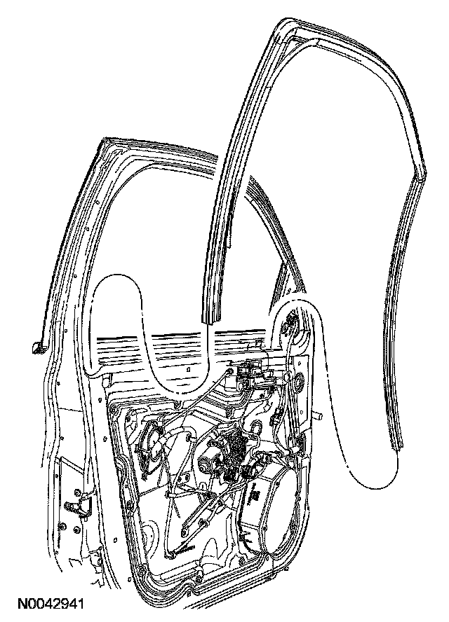 2. Remove the front door window glass inner weatherstrip.