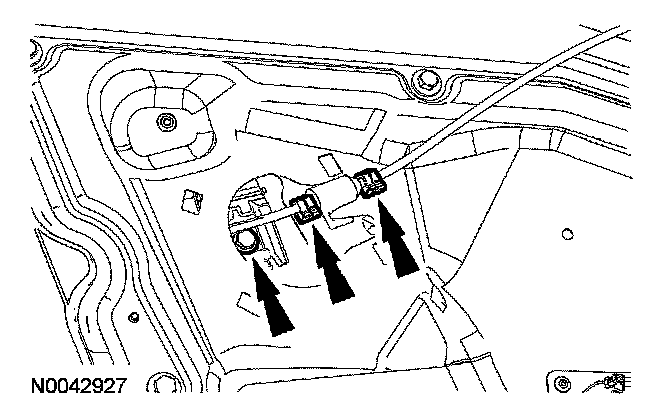 13. Remove the 10 door module bolts and the window regulator motor electrical connector.