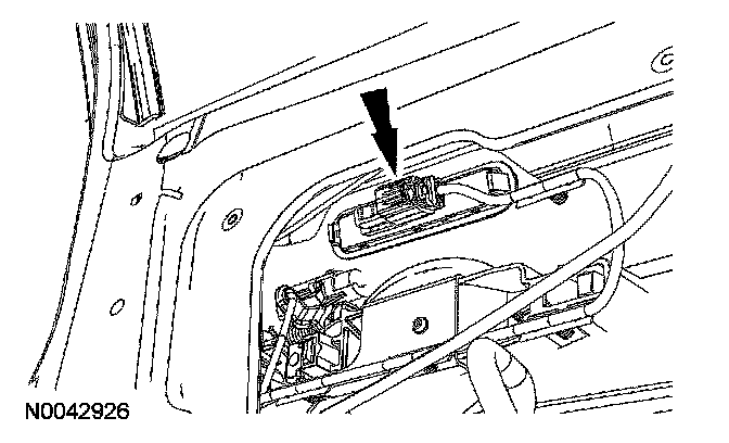 11. If equipped, disconnect the keyless entry keypad and door lock electrical connector and release from the bracket.