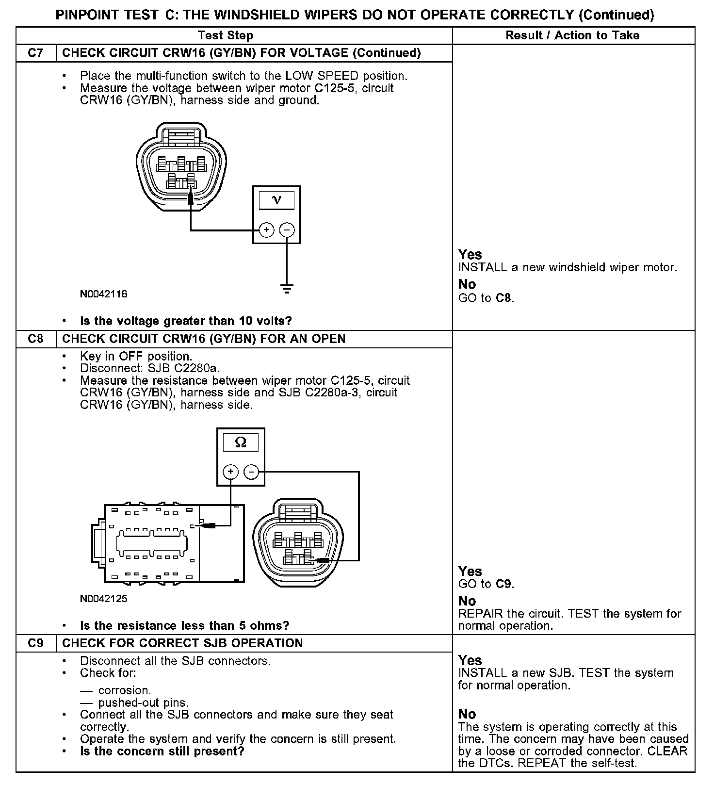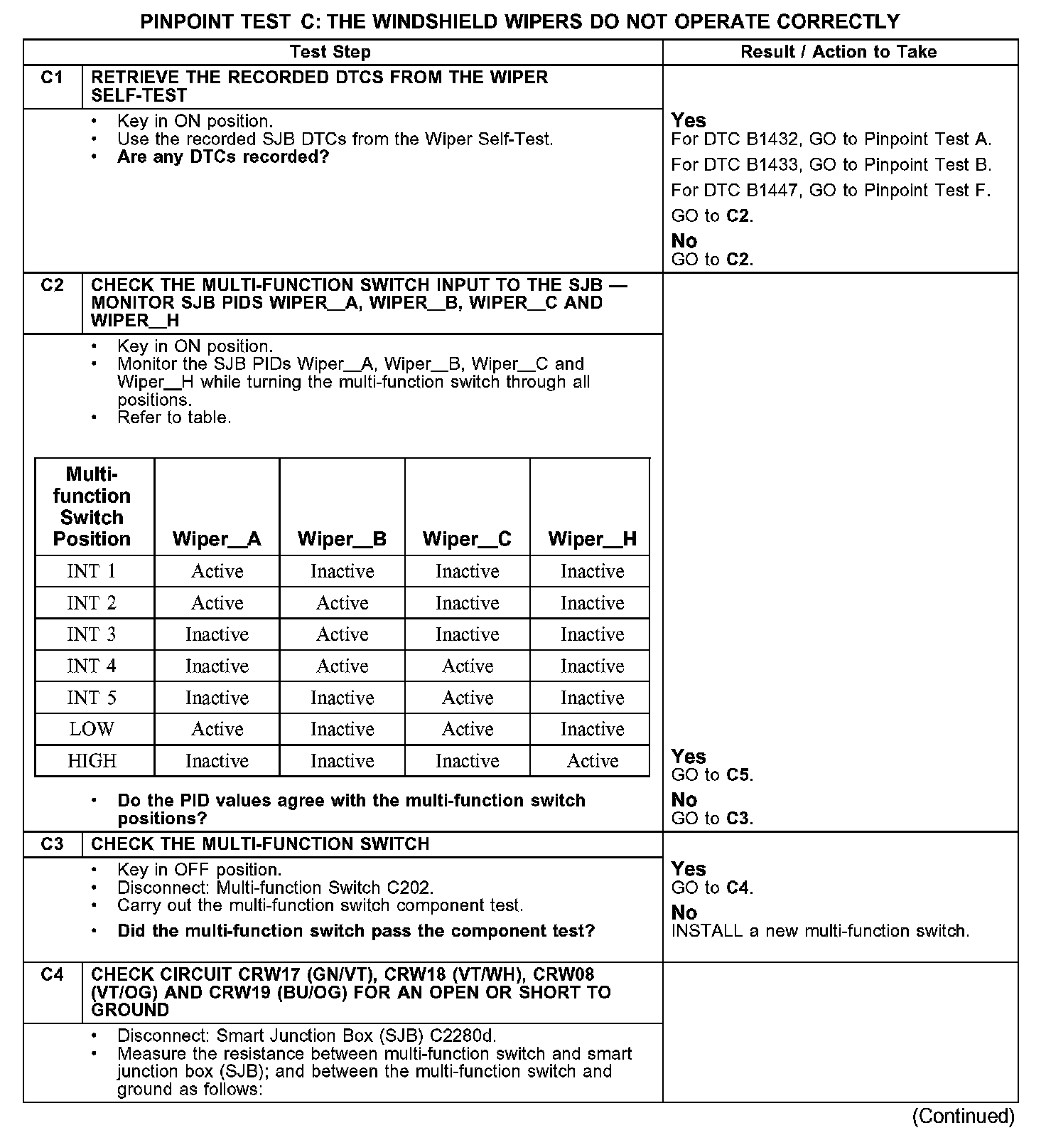 PINPOINT TEST C: THE WINDSHIELD WIPERS DO NOT OPERATE CORRECTLY