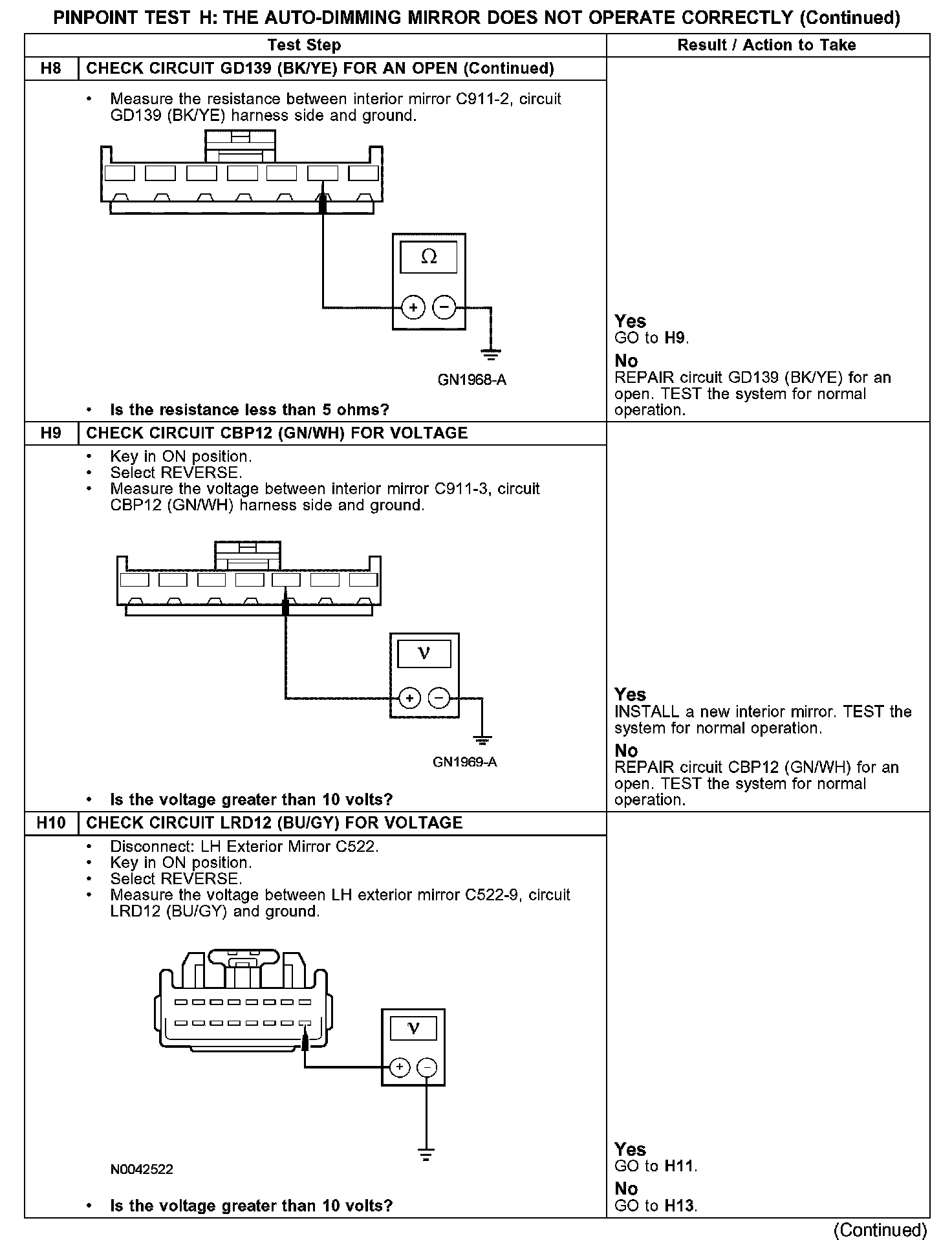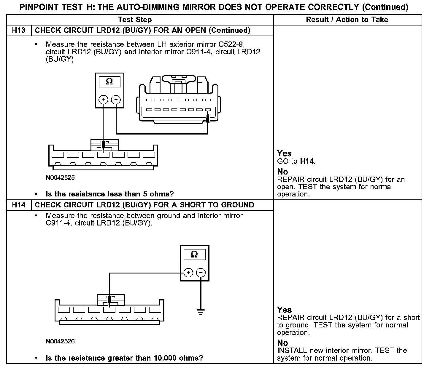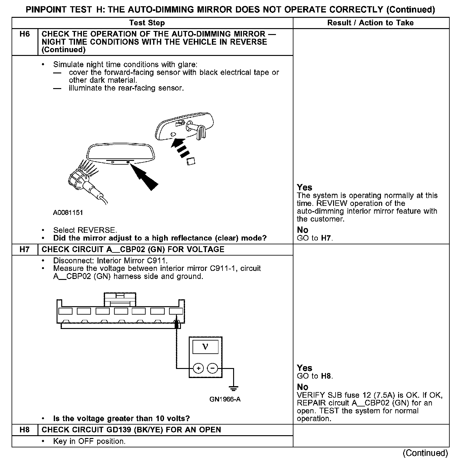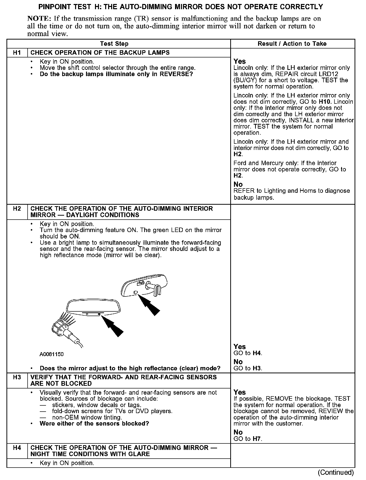 PINPOINT TEST H: THE AUTO-DIMMING MIRROR DOES NOT OPERATE CORRECTLYH1-H4: