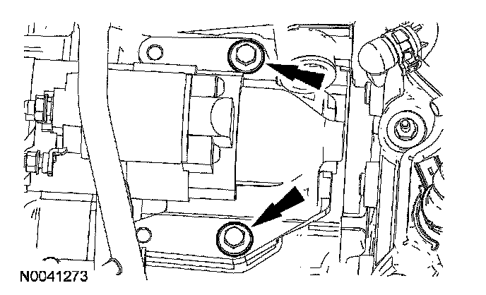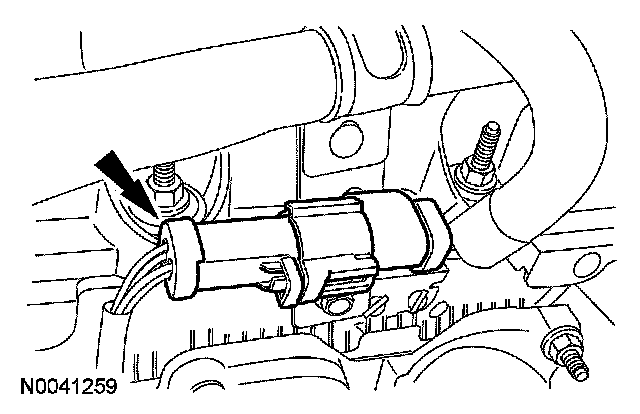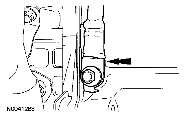 31. Position the power steering pressure (PSP) hose on the engine and install the PSP hose bracket-to-power steering reservoir bolt.