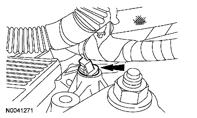 15. Connect the LH heated oxygen sensor (H02S) electrical connector and pin-type retainer.