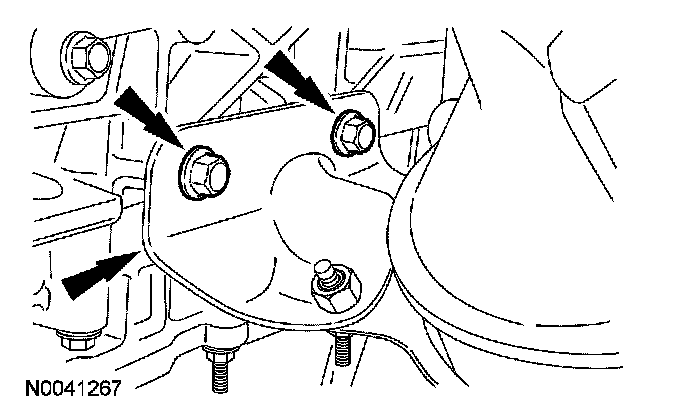 13. Install the LH catalytic converter bracket and the 2 bolts.