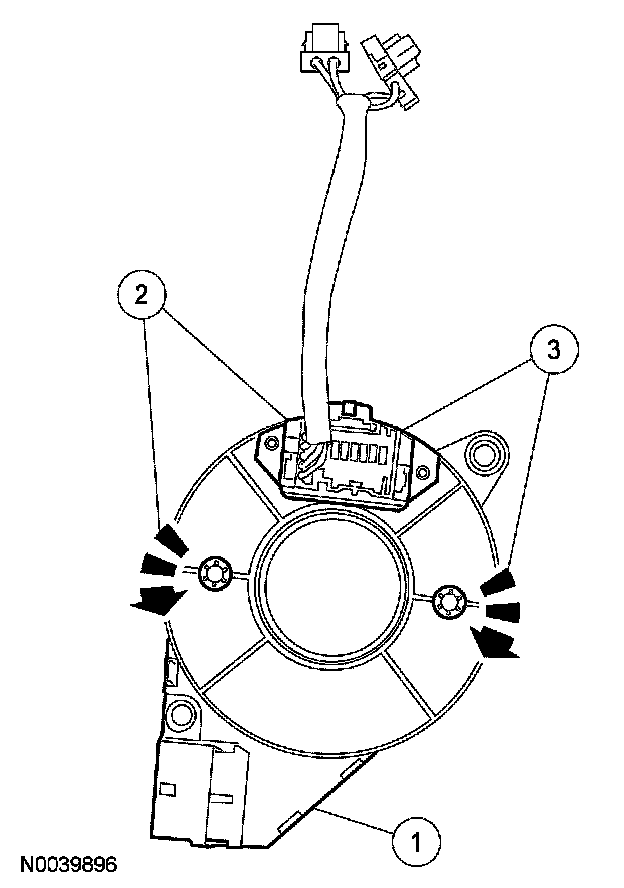 3 Turn the clockspring clockwise (approximately 2.25 turns) until the clockspring rotor wiring and connector are in the 12 o'clock position. Clockspring is now centered.