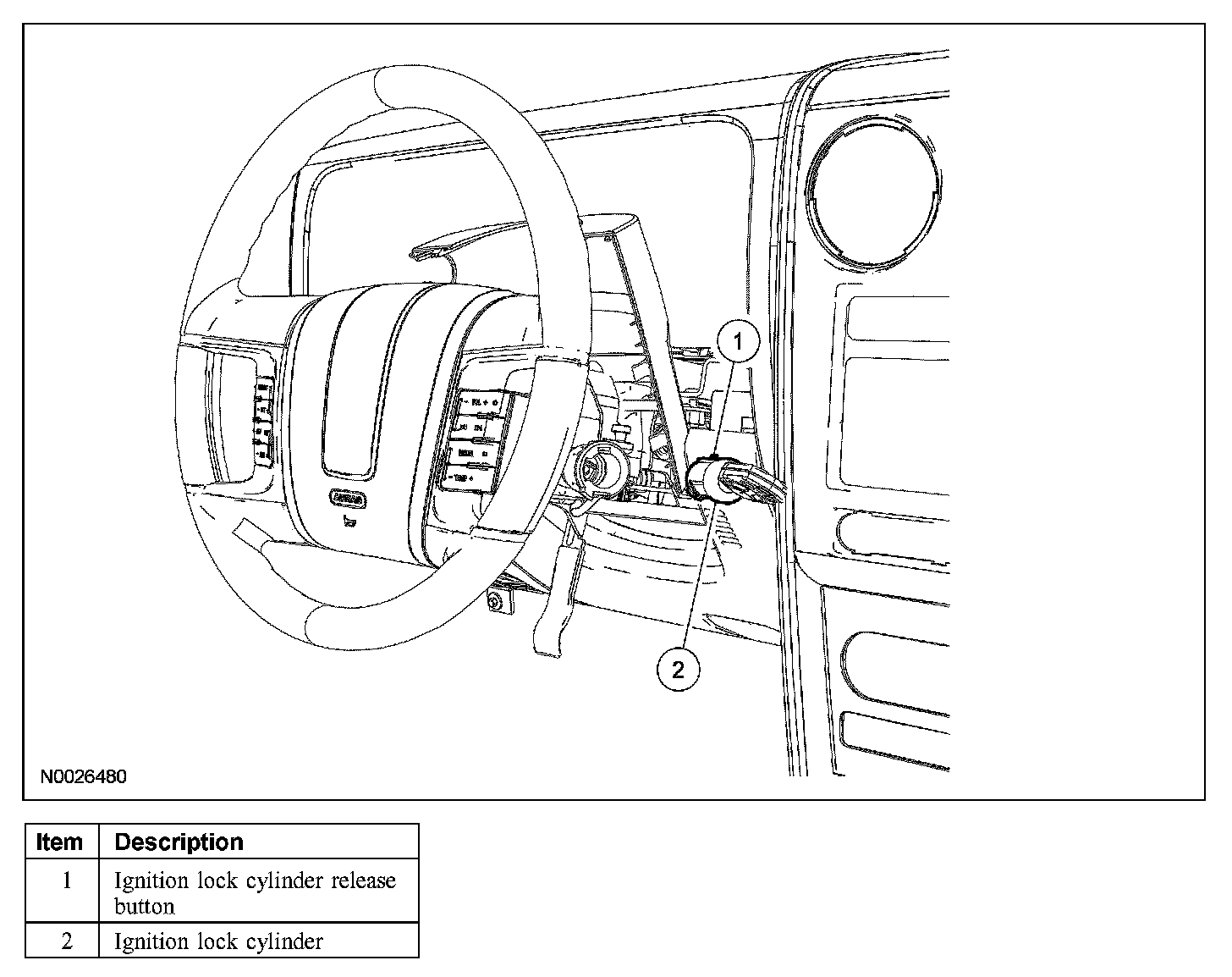 3. Using a suitable tool, press the ignition lock cylinder release button and remove the ignition lock cylinder.