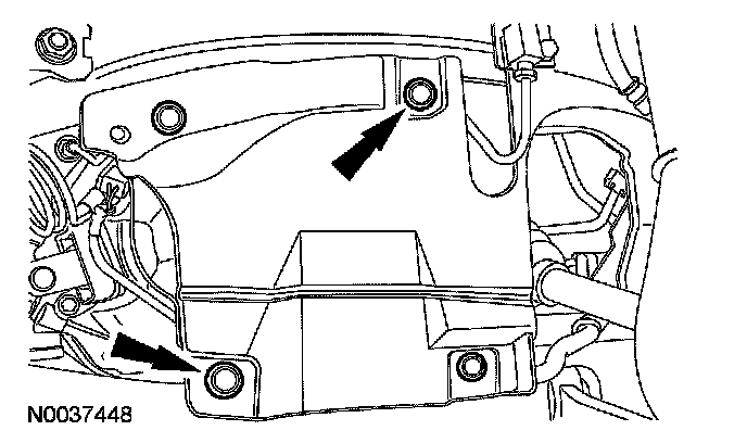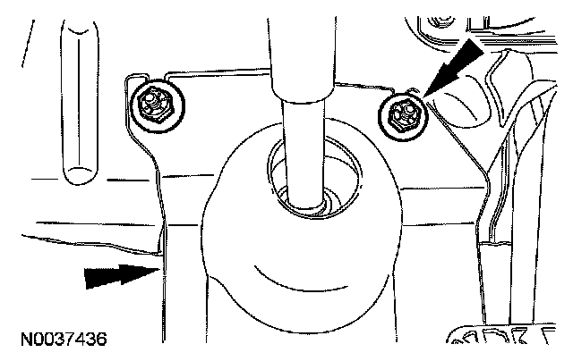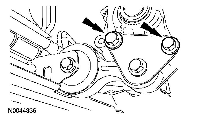 14. Remove the 2 engine roll restrictor bracket bolts.
