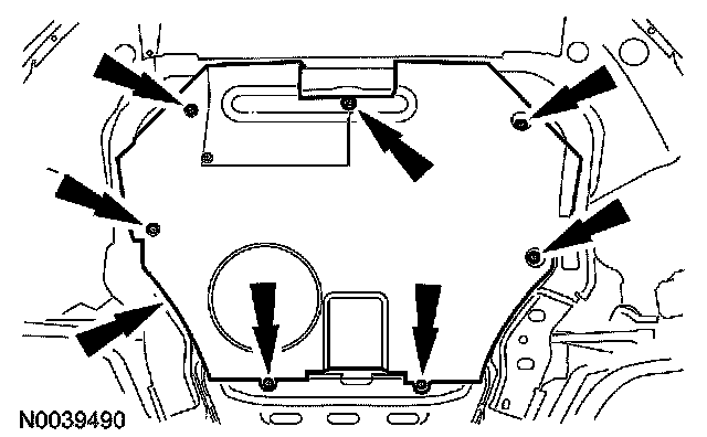 7. Remove the 8 screws and position the LH and RH splash shields aside.