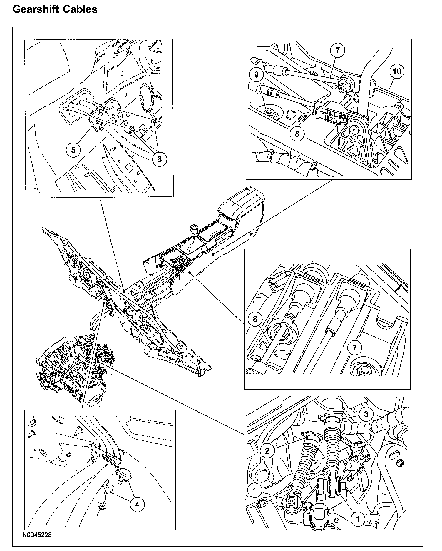 10. CAUTION: Carefully disconnect the cable from the shift lever assembly. Do not damage the shift cable retainers.