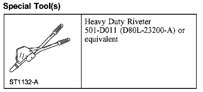 - When installing the block heater electrical adapter, the special tool must be used to install the new rivets.