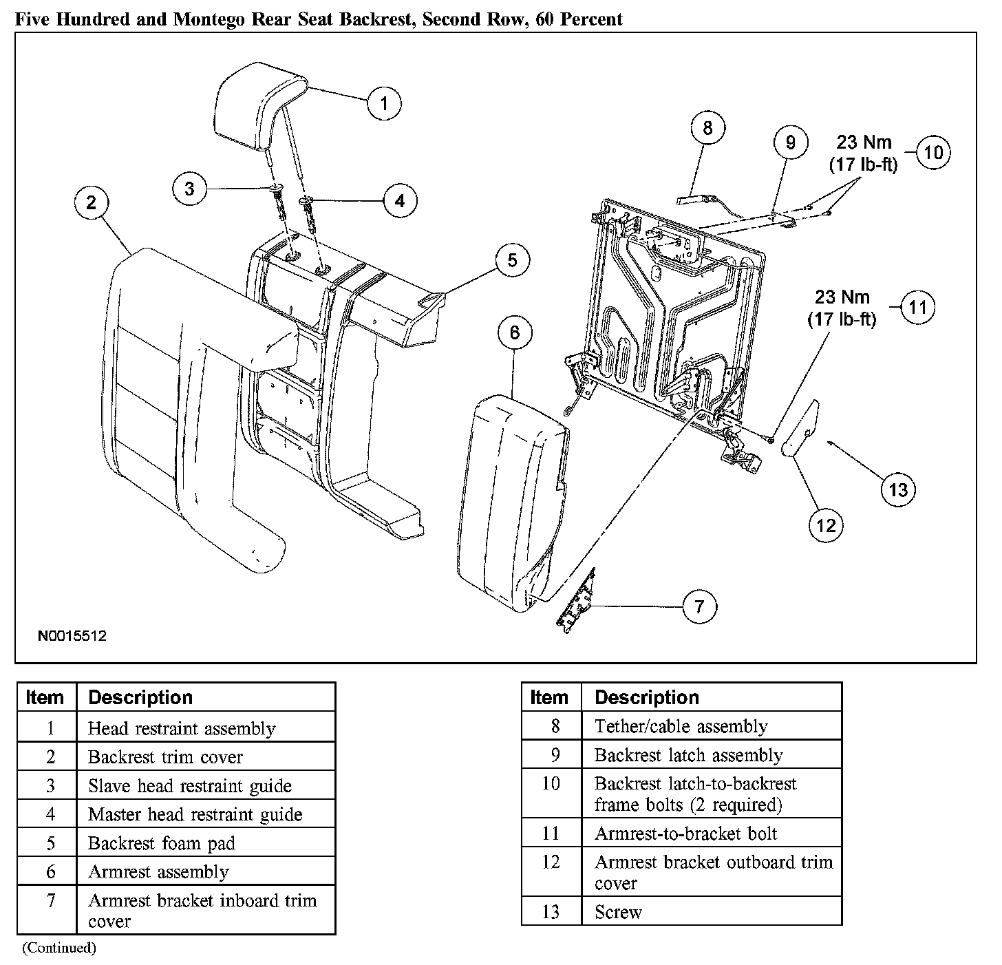 Seat - Exploded View, Second Row