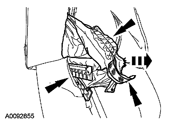 8. Release the side air bag module backrest trim cover chute J-clip from around the side air bag module.