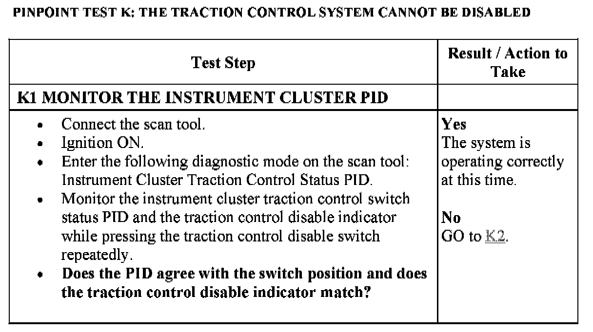 TEST K: THE TRACTION CONTROL SYSTEM CANNOT BE DISABLED