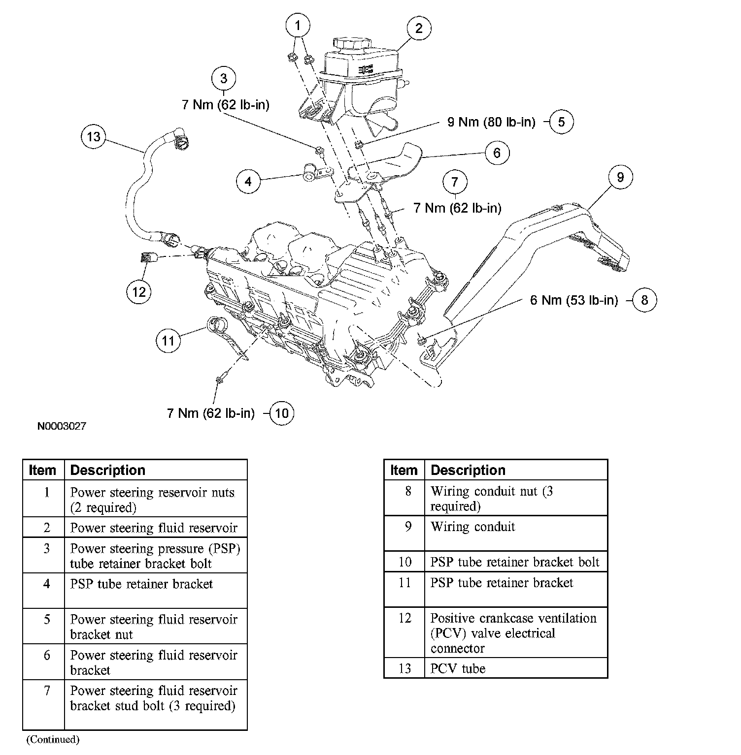 8. Remove the 3 power steering fluid reservoir bracket stud bolts from the valve cover.