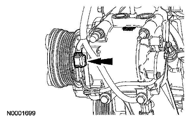 6. Disconnect the A/C compressor electrical connector.