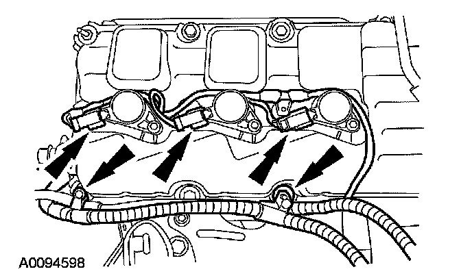 29. Disconnect the RH ignition coil electrical connectors and detach the wiring retainers.