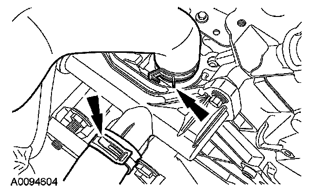12. Disconnect the LH heated oxygen sensor (HO2S) electrical connector and detach the wiring retainer.