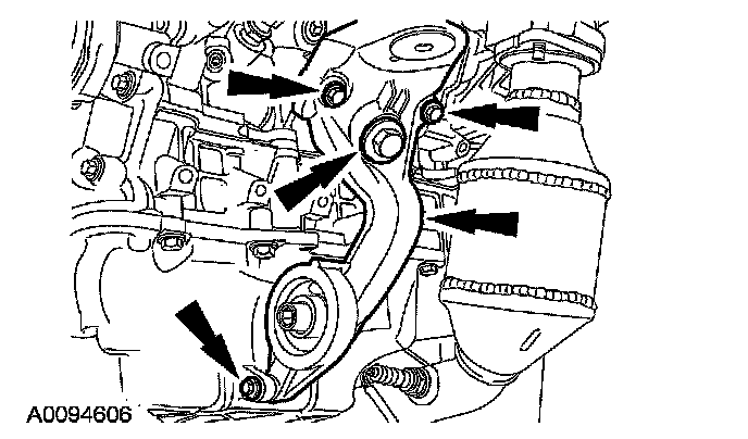 11. Remove the 5 bolts and the A/C compressor bracket.