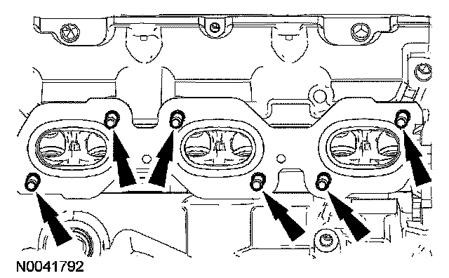 45. Remove and discard the 6 LH exhaust manifold nuts.
