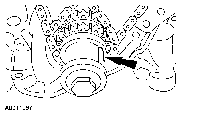 6. If timing marks in the timing chains are not evident, use a permanent-type marker to mark the crankshaft and camshaft timing marks on the LH and RH timing chains.