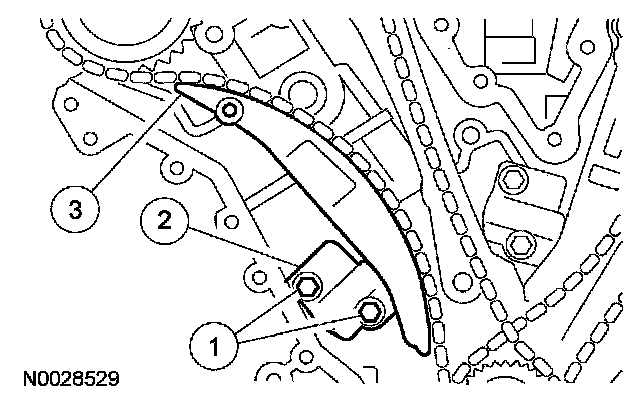 13. Remove the LH timing chain and timing chain guide.