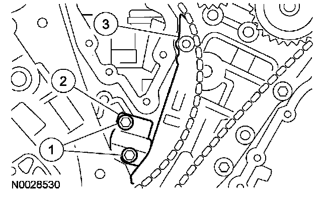 8. Position the LH timing chain and guide and install the bolts.