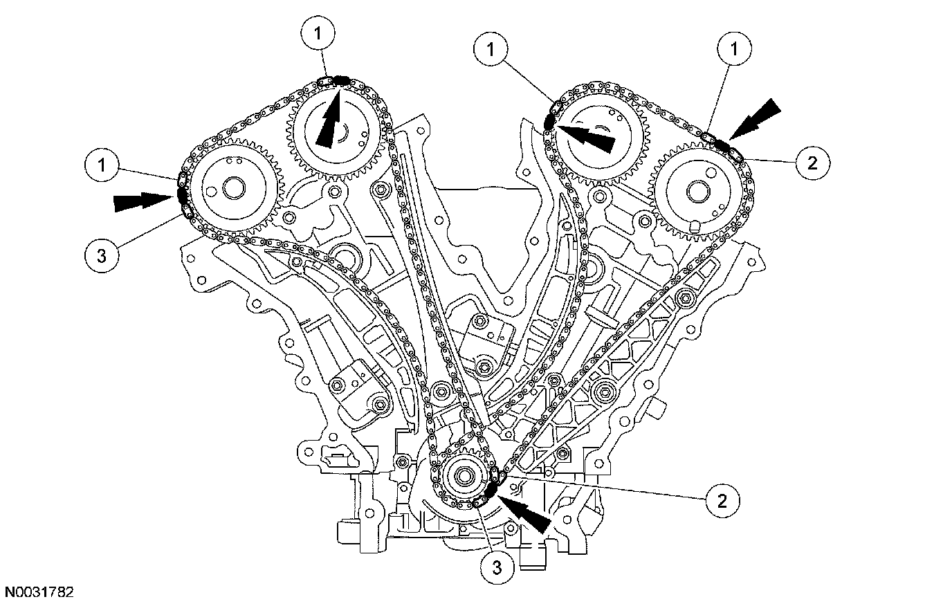 11. Verify that the RH camshafts are correctly positioned.