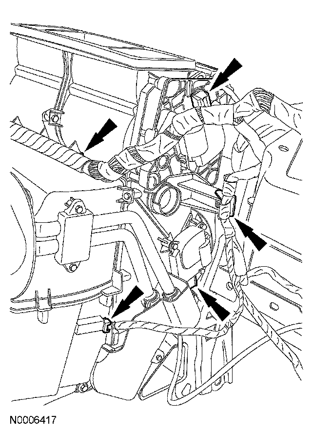 6. Detach the wire harness from the heater core and evaporator core housing.
