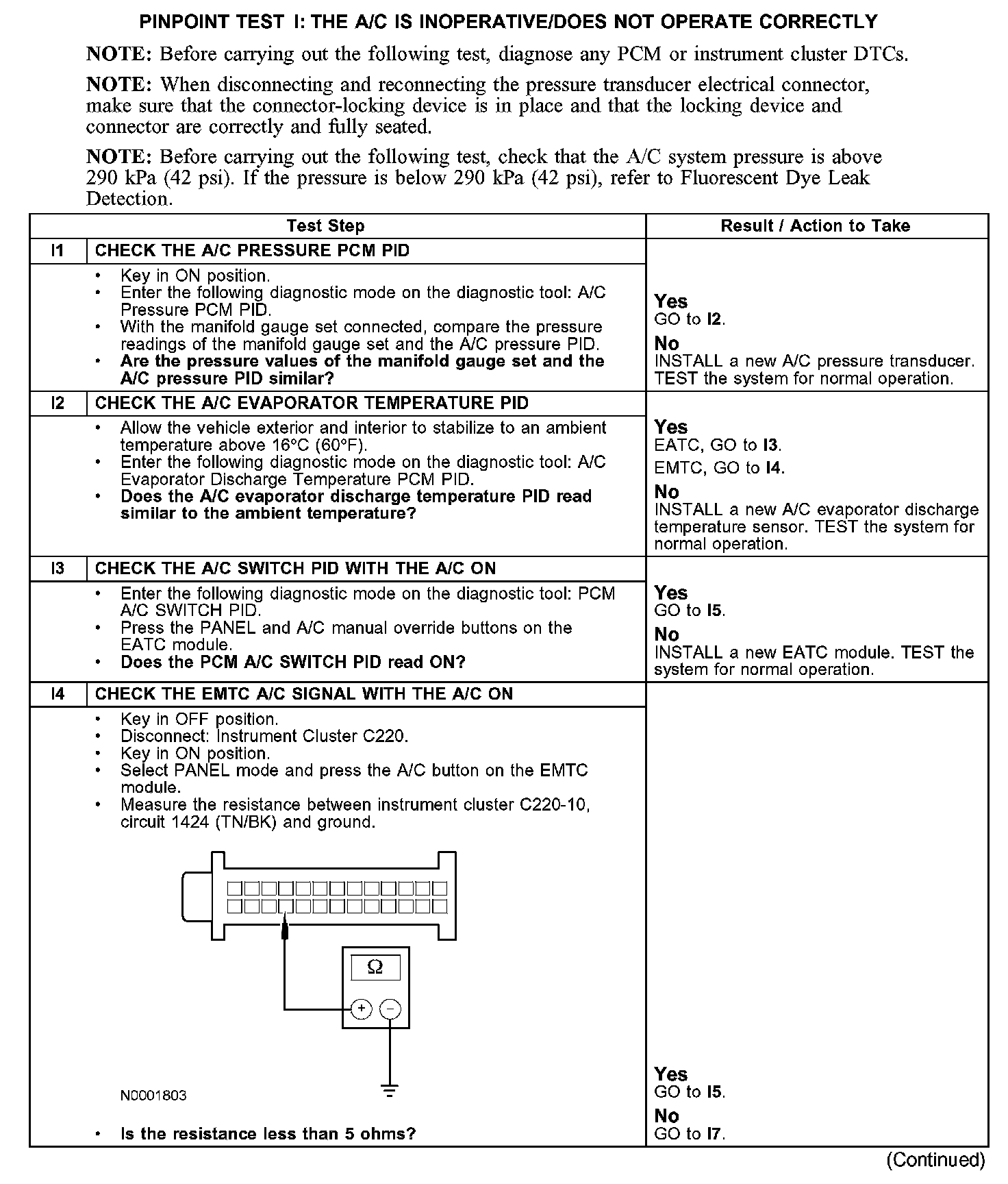 PINPOINT TEST I: THE A/C DOES NOT OPERATE/DOES NOT OPERATE CORRECTLYI1-I4: