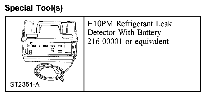 Leak test the refrigerant system using the Refrigerant Leak Detector. Follow the instructions included with the leak detector for handling and operation techniques.