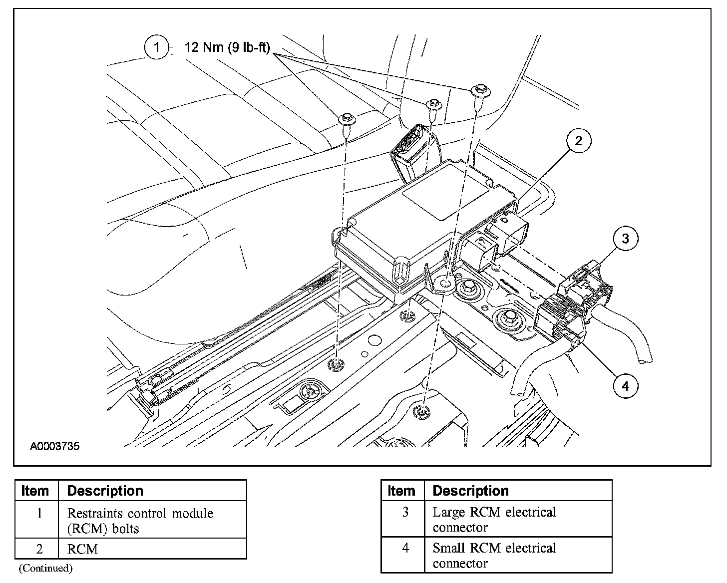 - When installing a new restraints control module (RCM), always make sure the correct RCM is being installed. If an incorrect RCM is installed, erroneous DTCs will result.