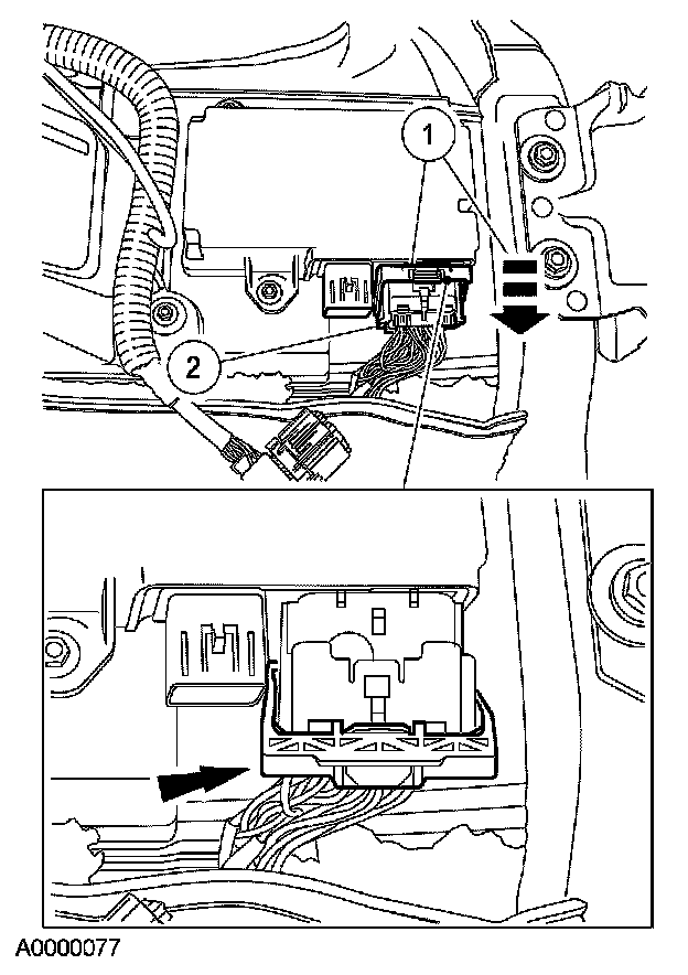 - CAUTION: Do not push the connector to where the lever pivots and seats itself. Light pressure is needed to get the connector into position on the RCM before using the lever to fully seat the connector.