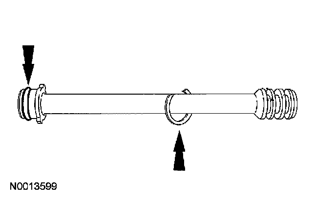 10. Remove and discard the 2 square cut seals, the O-ring seal and the retaining clip from the primary cover feed tube.
