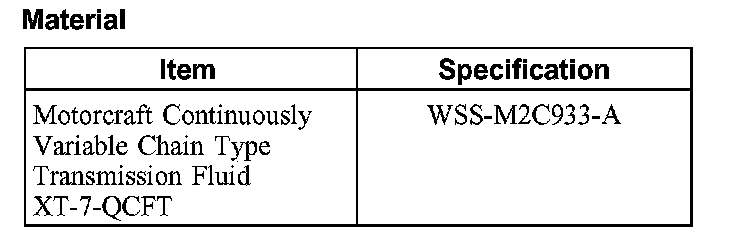 CAUTION: MERCON, MERCON V, MERCON SP, Motorcraft Premium Automatic Transmission Fluid and Motorcraft Continuously Variable Chain Type Transmission Fluid are not interchangeable transmission fluids. The use of any fluid other than what is recommended for this transmission will cause transmission damage.