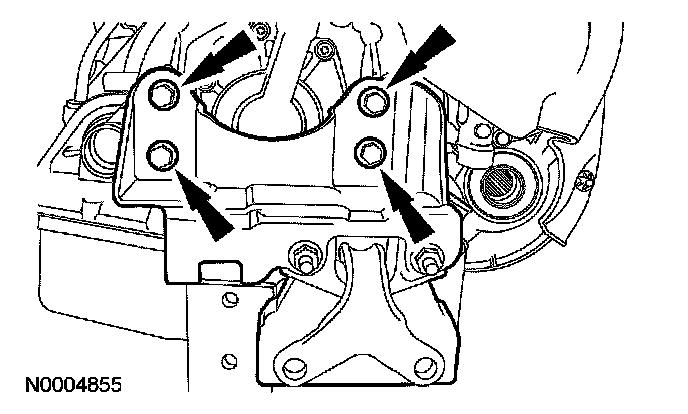 2. Remove the bolts and remove the rear transaxle mount.